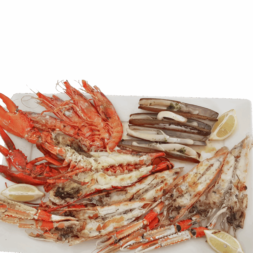 Mariscada Ifach 99,00€€ 4 Gambas rojas4 Cigalas4 Zamburiñas1 Bogavante